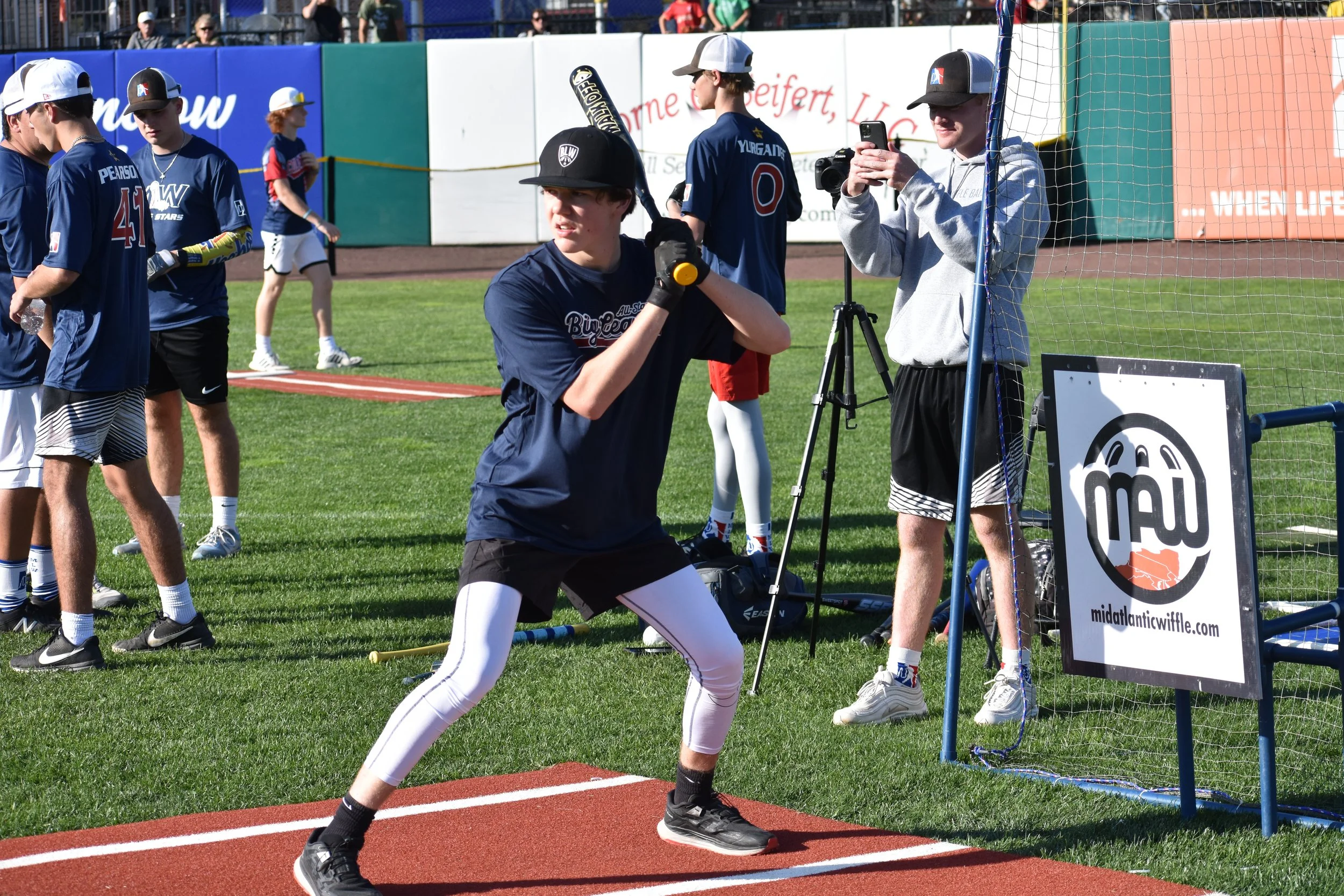 50+ players competed the third United Wiffle®Ball home run derby at Friday FanFest for overe $1,300 in cash prizes. The Keggers’ Grant Miller with the Juggernauts’ Chris Sarnowski & the Phenoms’ Vin Robles also finishing in the money.